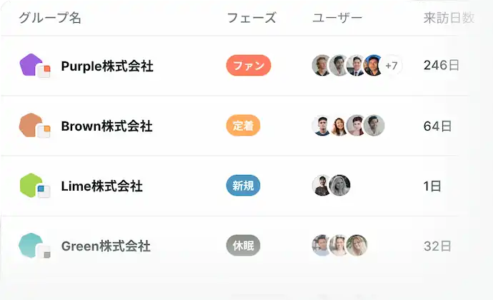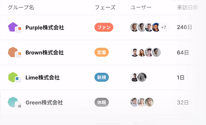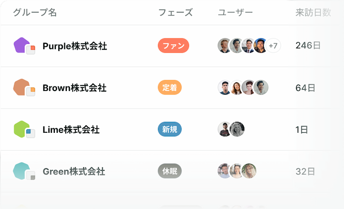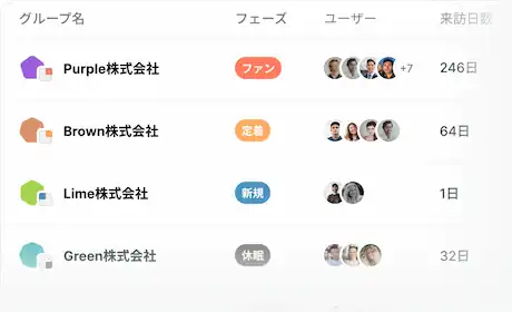 企業単位での定着度や利用傾向を把握。