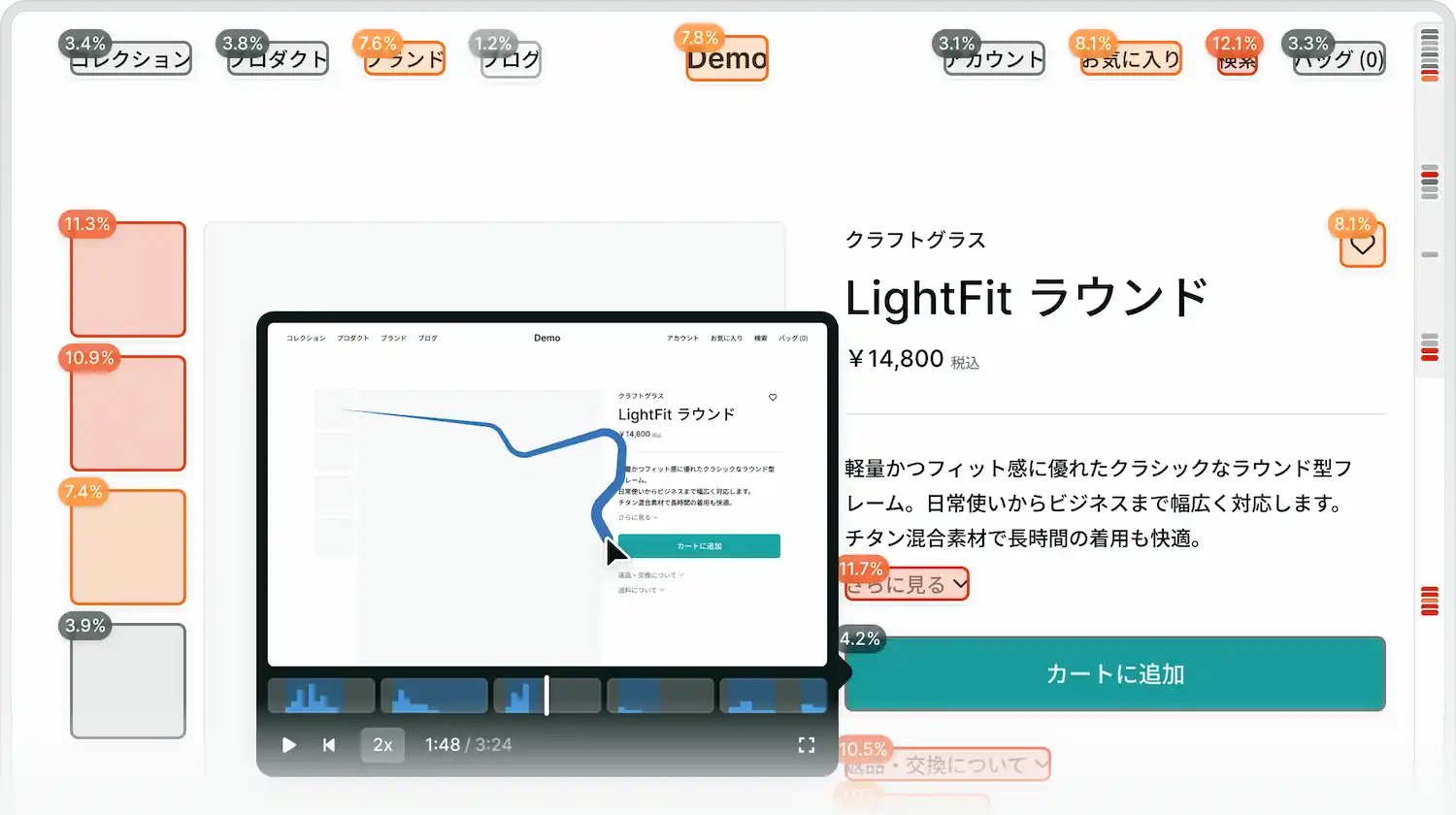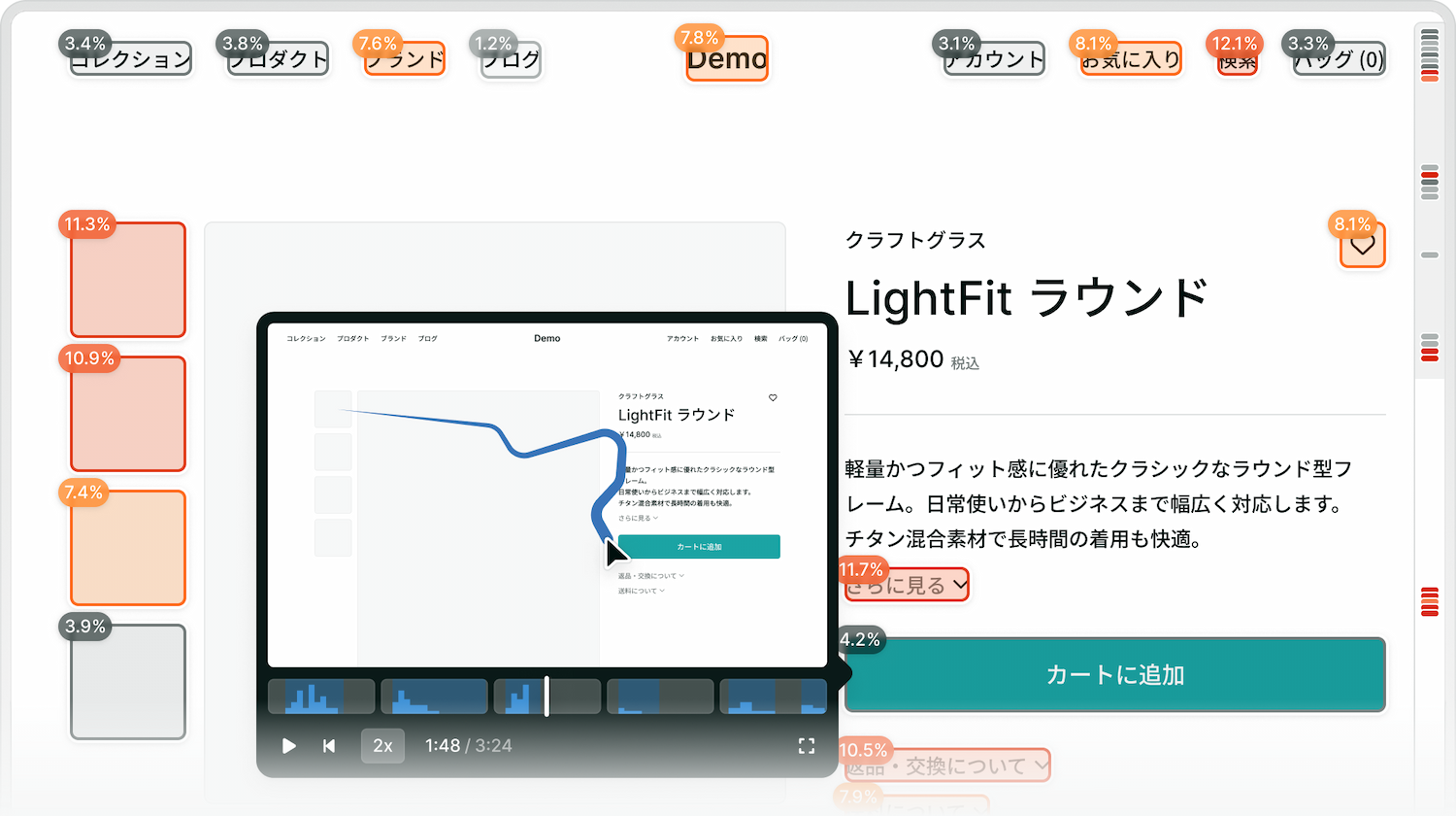 ユーザーの動きを動画で確認することで、行動の背景まで理解を深めることができます。