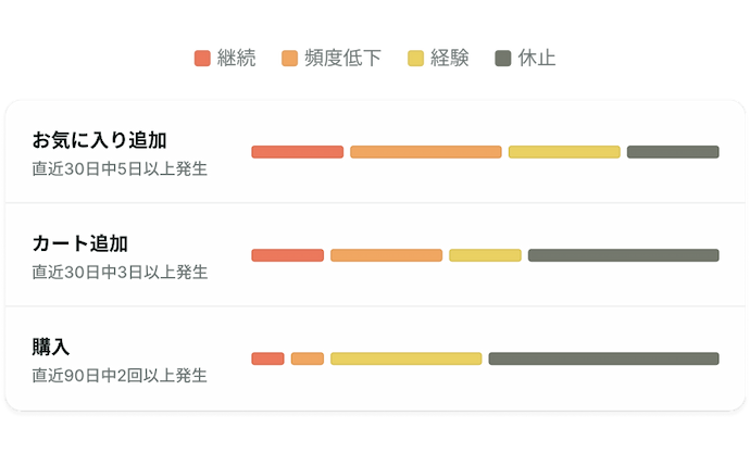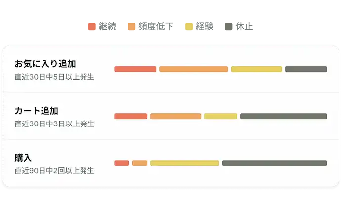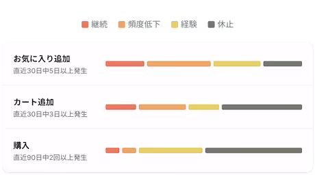 行動・属性・変化の流れから、多角的にユーザー傾向を捉えます。