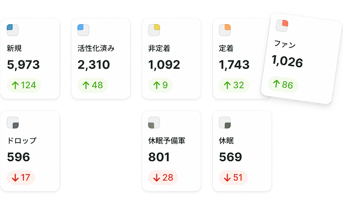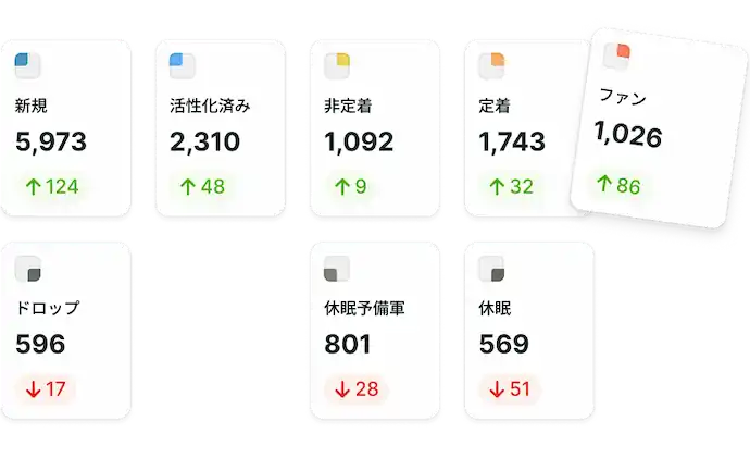 新規・定着・ファンなどユーザーの定着度を可視化。