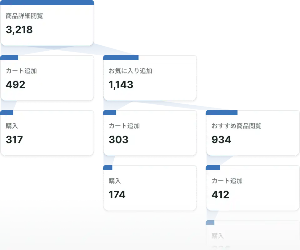 どの段階で何人が離脱し、どんな行動を取ったかを把握できます。