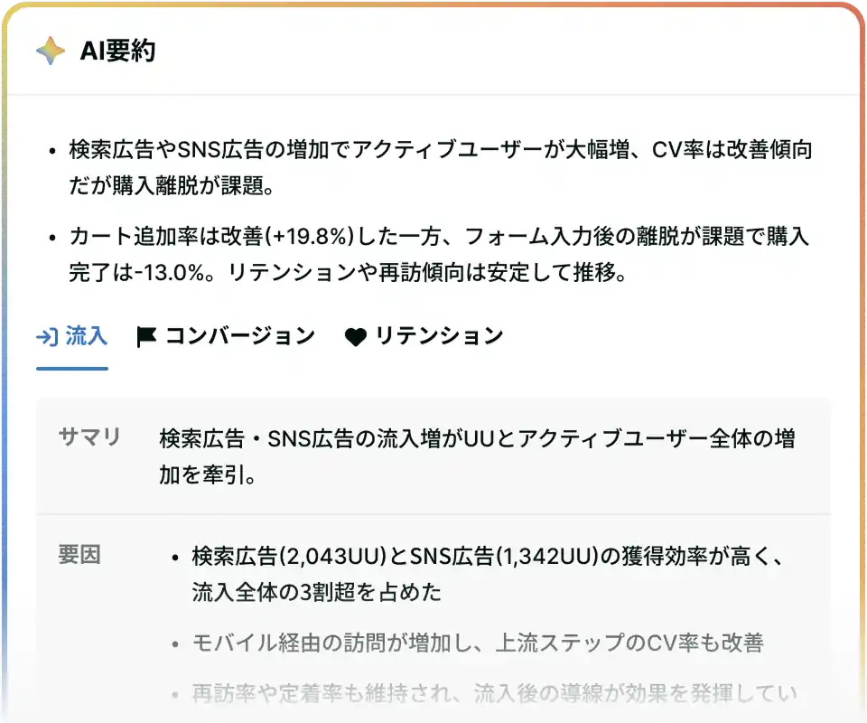- CV率が高いLPや、影響度の大きいページ・行動を特定